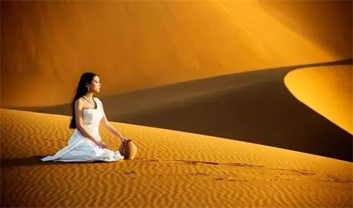當你去到戈壁、古城古堡等古樸無華的地方,大膽撞色吧!背景已經是一片佛系的土黃了,如果你再穿土黃、黑色、深綠這樣深暗的顏色,會顯得了無生氣。一定要選上一件亮色的單品,紅色 、藍色、白色、橙色、綠色都很棒,色調按適合你自己的色彩季型選為上佳。