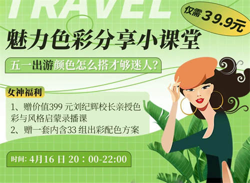 不會色彩搭配?4月16日祺馨重磅女神福利:【魅力色彩分享小課堂】,僅需39.9 元,就可以讓你成為色彩搭配高手。