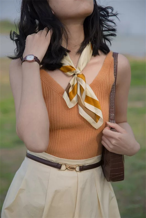就像開篇提到的那位女生的搭配,如果用鉛錫色、可可色這一類下裝來搭配橙色上衣,那一定比黑色要好上一萬倍。