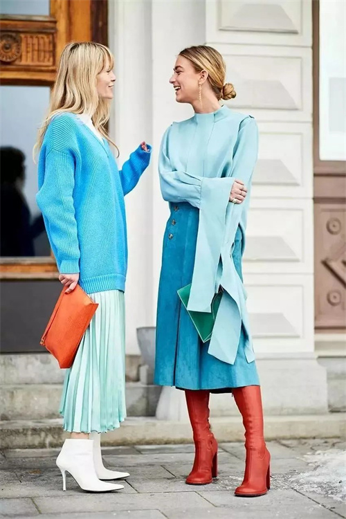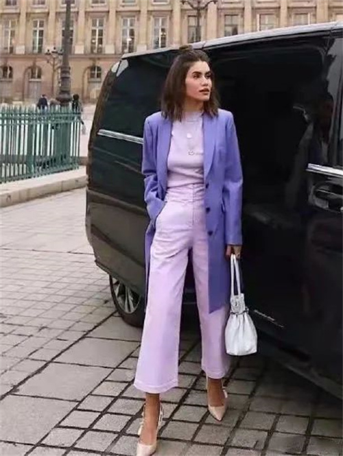 同色系搭配我們經常提到,本身就是很高級的、實用的一種色彩搭配方法,如果拉開這些同色相色彩的明度差,就會發現產生了非常有意思的視覺變幻,更顯靈動、前衛。
