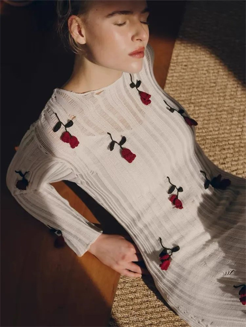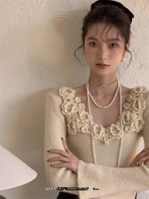 款式上,根據(jù)季節(jié)可以優(yōu)先選擇:針織衫和襯衫。針織衫可作為日常休閑裝,立體花卉的加入更增添濃郁的溫柔女人味兒。