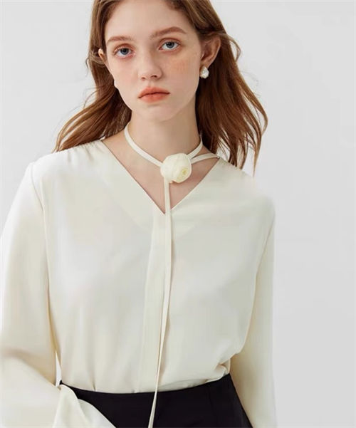 還可以嘗試把襯衫上的飄帶系成花朵形狀。