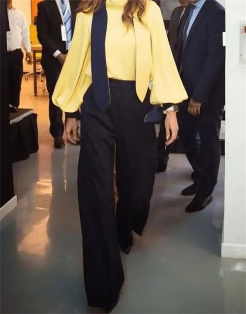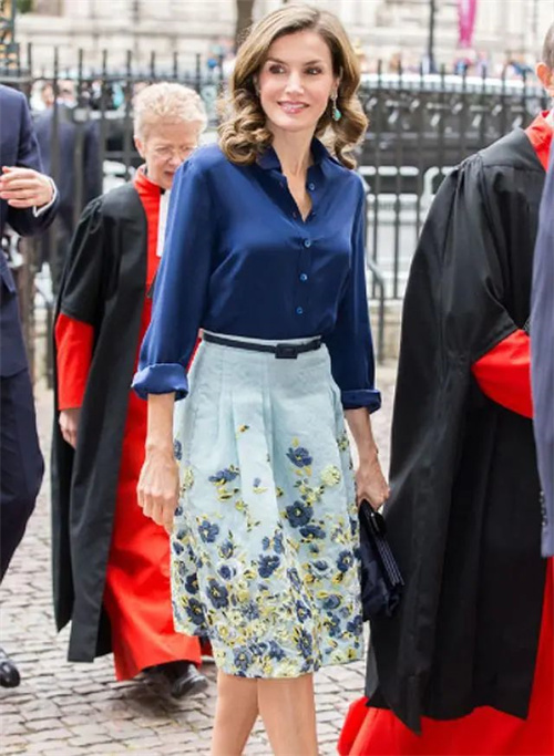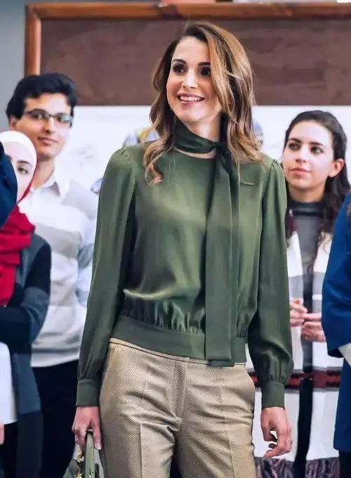 例如代表國家出席各種活動的王妃們,舉王妃的案例并不過分,襯衫造型反倒是她們較為親和、隨意的場合了,而不是那些華服、套裝,她們就常常選擇一些彩色系的襯衫,搭配各式符合她們風格和人文特點的下裝。看看,這多好學啊,干嘛只知道穿白襯衫呢。